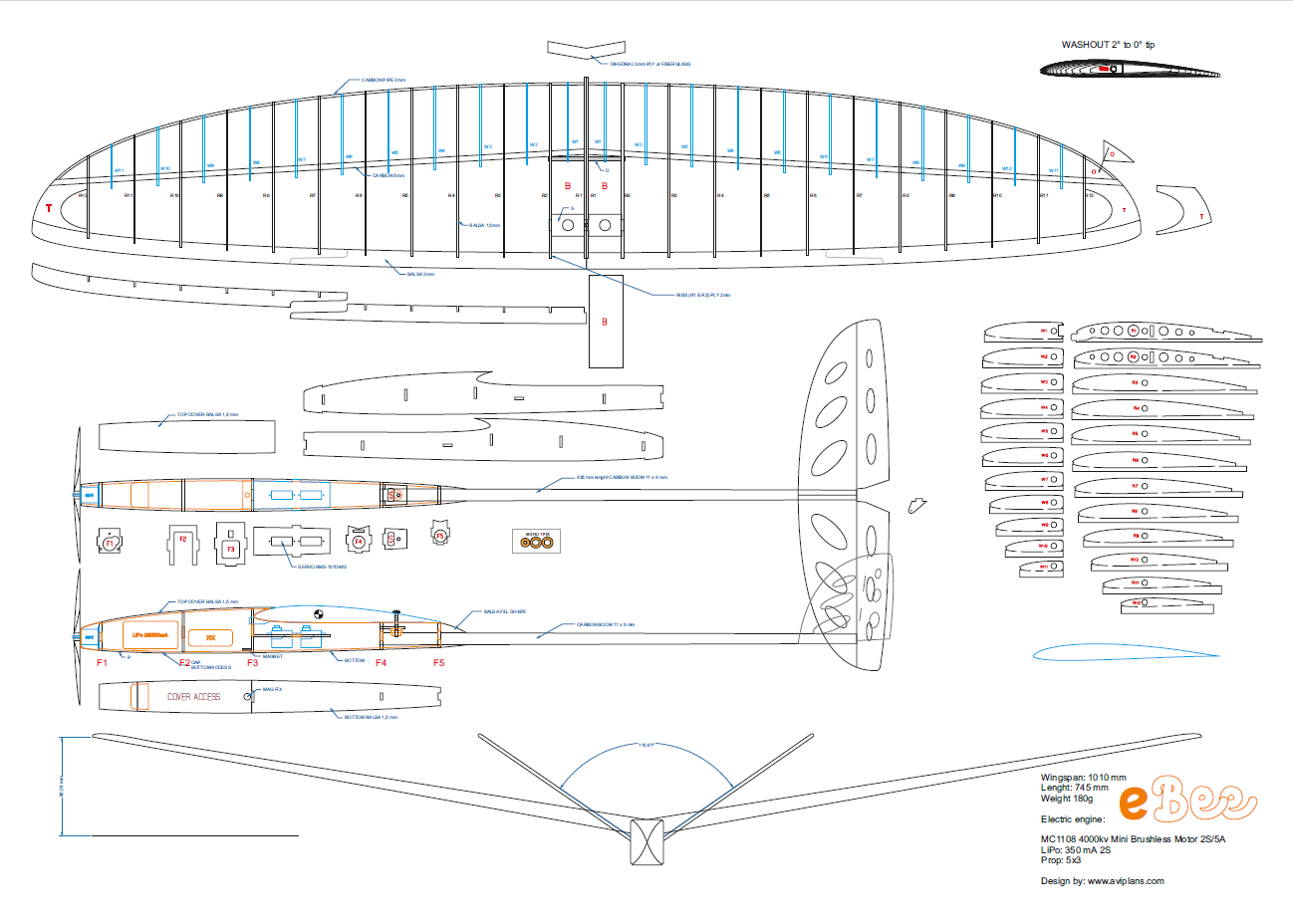The construction steps are almost the same as for the Bee-DLG model, with minor adaptations specific to electric power, such as installing the motor, battery, and arranging the electronics inside the fuselage.